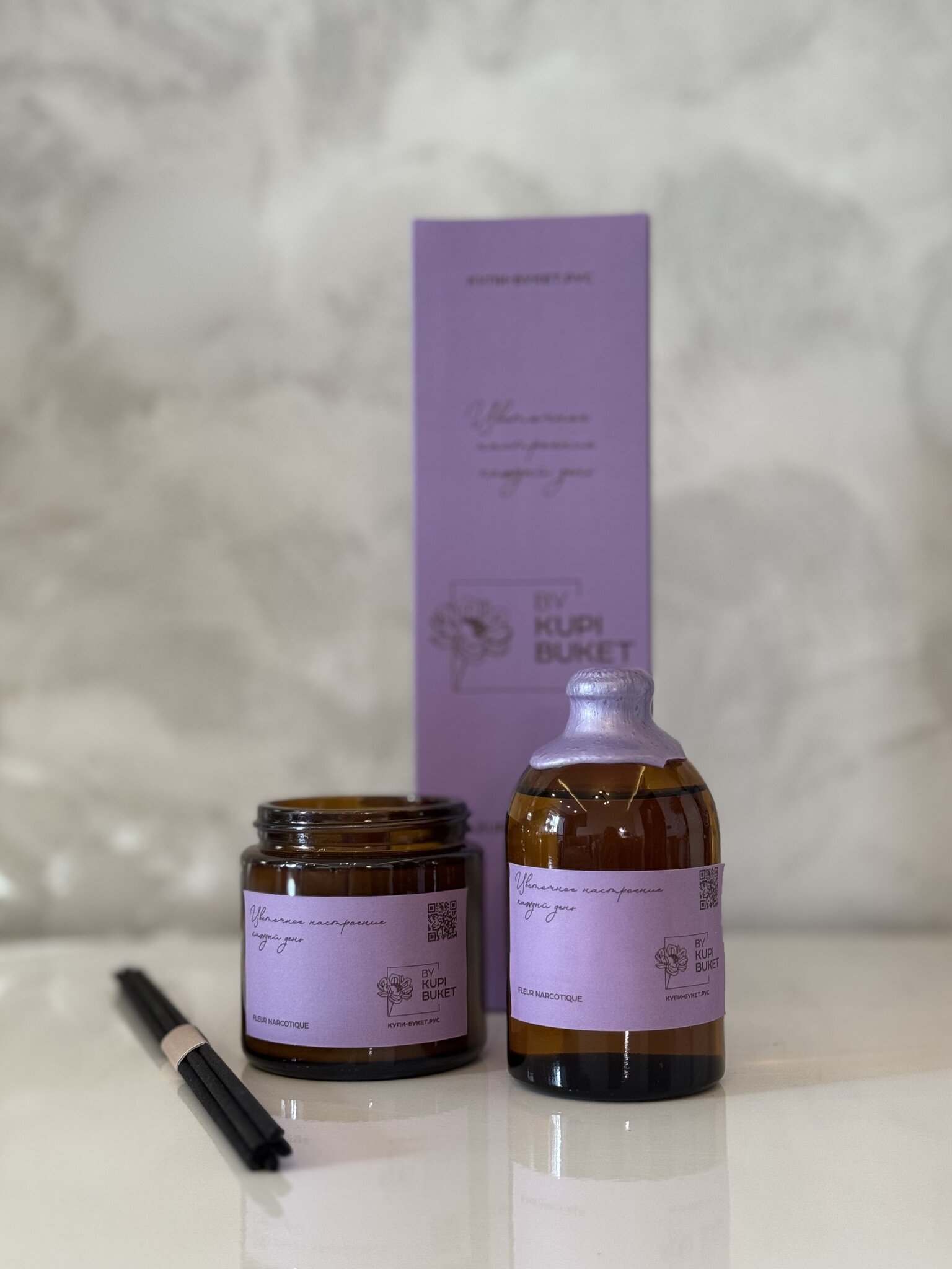 Погрузитесь в атмосферу уюта и гармонии с нашей ароматической свечой и диффузером. Эта ручная работа мастеров создана с любовью и вниманием к деталям, чтобы подарить вам моменты расслабления и наслаждения.
