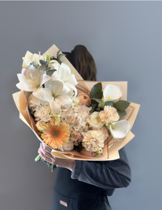 Индивидуальный дизайн: Каждый букет создается с любовью и вниманием к деталям. Мы учитываем ваши предпочтения и подбираем цветы, которые идеально сочетаются между собой, создавая гармоничную композицию.